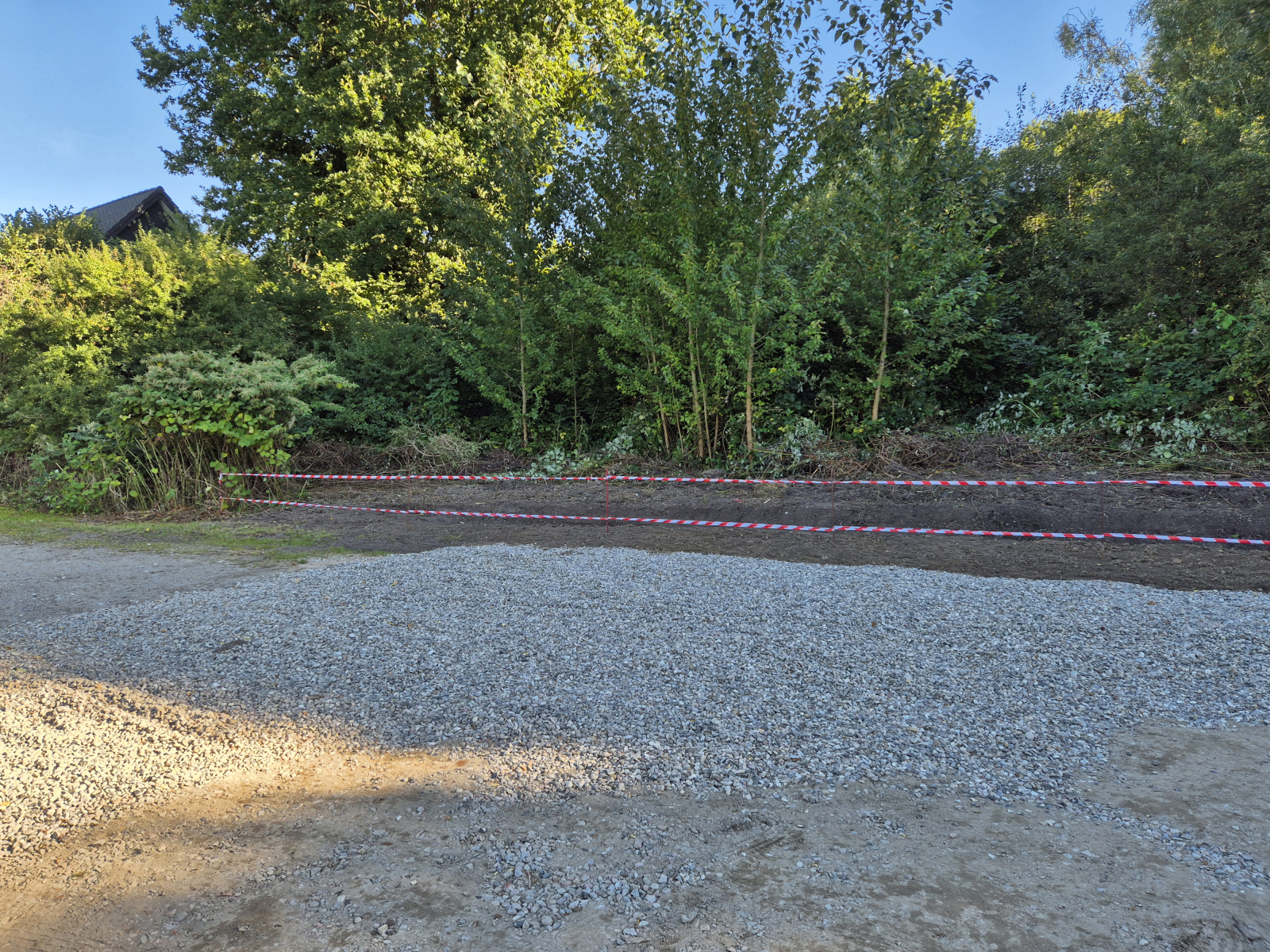 Die Gemeinschaftsarbeit auf der Wulfswiesenkoppel 2025 war eine der schweißtreibenden Arbeiten überhaupt. Dadurch das der Parkplatz in den letzten Jahren stark gelitten hat wurde hier eine neue Deckschicht aufgetragen. Der Wildwuchs zu den Kleingärten wurde entfernt und es wurde mit einem Bagger probiert den  japanischen Staudenknöterich aus zu graben. Auch hier Chapeau.