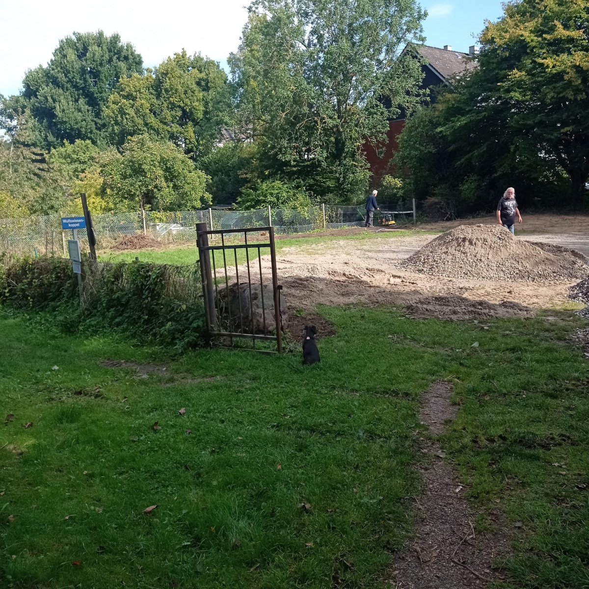 Die Gemeinschaftsarbeit auf der Wulfswiesenkoppel 2025 war eine der schweißtreibenden Arbeiten überhaupt. Dadurch das der Parkplatz in den letzten Jahren stark gelitten hat wurde hier eine neue Deckschicht aufgetragen. Der Wildwuchs zu den Kleingärten wurde entfernt und es wurde mit einem Bagger probiert den  japanischen Staudenknöterich aus zu graben. Auch hier Chapeau.